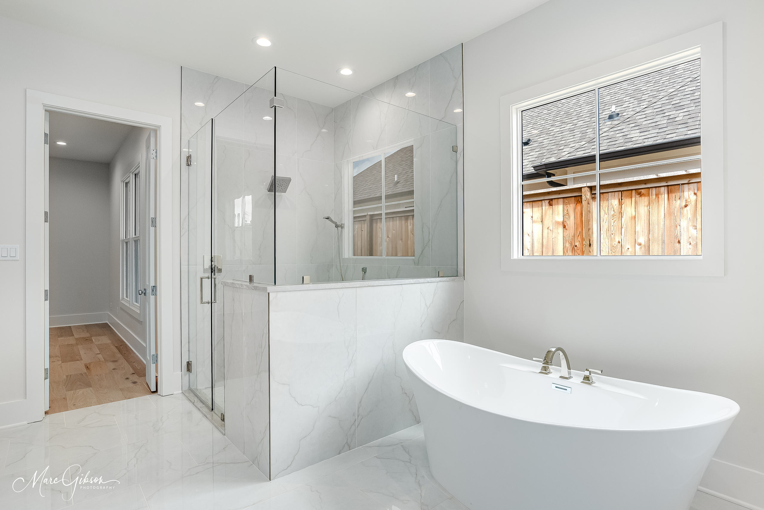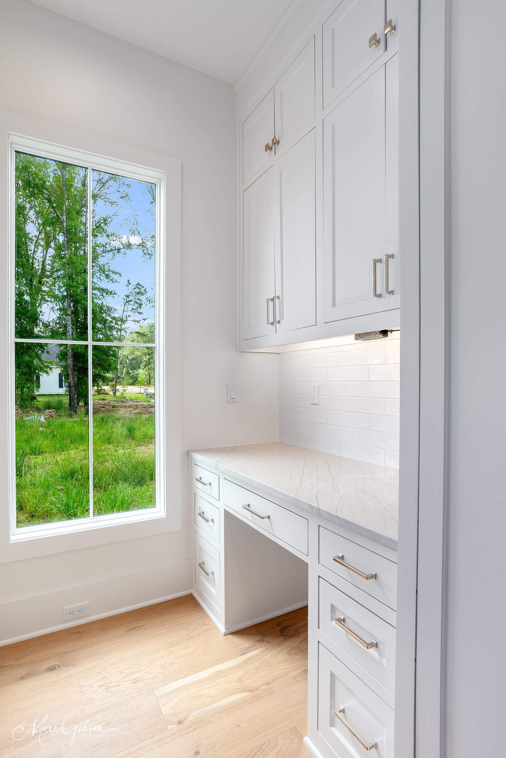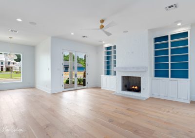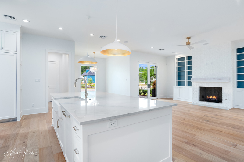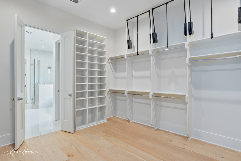 A gorgeous new construction home for sale in the perfect setting. Looking out to the new horseshoe park, this home is a showcase. Glass doors invite you into an open plan with elegant living area with fireplace and built-ins. Dining area looks out to the park. Kitchen is amazing with GE Monogram appliances and dishwasher, refrigerator, freezer, bar frig are paneled to match the European cabinets. The butler pantry is so much more than that as it’s covered in cabinets and with wonderful drawers for snacks or linens. The bar needs to be seen! A secondary bedroom and bath are at the front with big windows. The main bedroom is large with an amazing bathroom and closet. Huge shower, hamper drawers, the tub and then into the closet with shoe spots for sandals to boots and pull-down rods for season changes. Two powder rooms. Laundry room with ironing drawer and sink. Upstairs there are two bedrooms plus a massive den area and a flex space for your dreams – office, craft room, gym or ballet room. Walk-in access to floored attics from the flex room.