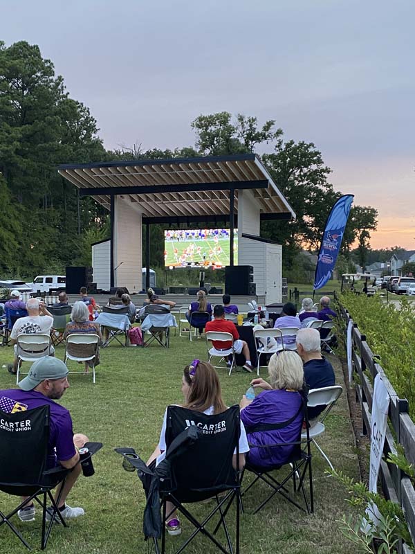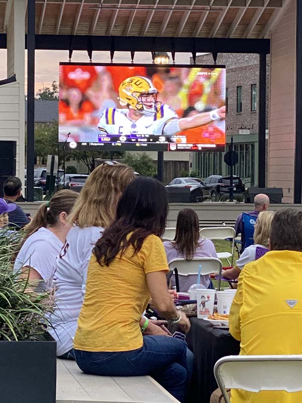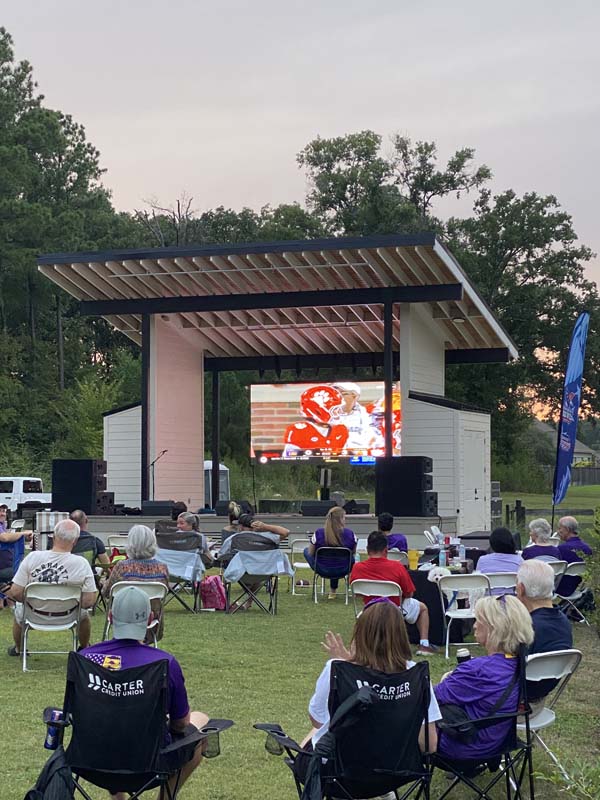 The Radiance Technologies Independence Bowl hosted a Fish & Football Watch Party in Town Center to kick off the 2025 college football season. Indy Bowl Foundation members and friends, plus residents and the public enjoyed a fun evening with food, games and fellowship while cheering on the LSU Tigers!