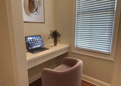 Adjacent to Windrush Village that contains restaurants, coffee shop, sweet shops, barber, a primary care medical office, bank, financial planner, and USPS kiosk.